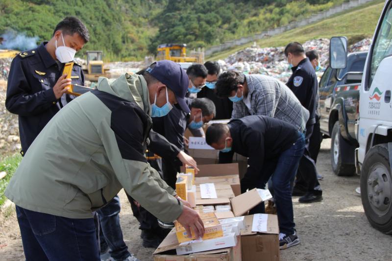 10月13日上午,迪慶州煙草專賣局聯(lián)合州市場監(jiān)督管理局、州公安局、州郵政管理局等相關(guān)部門,在香格里拉市垃圾處理廠舉行了假煙公開銷毀活動。
