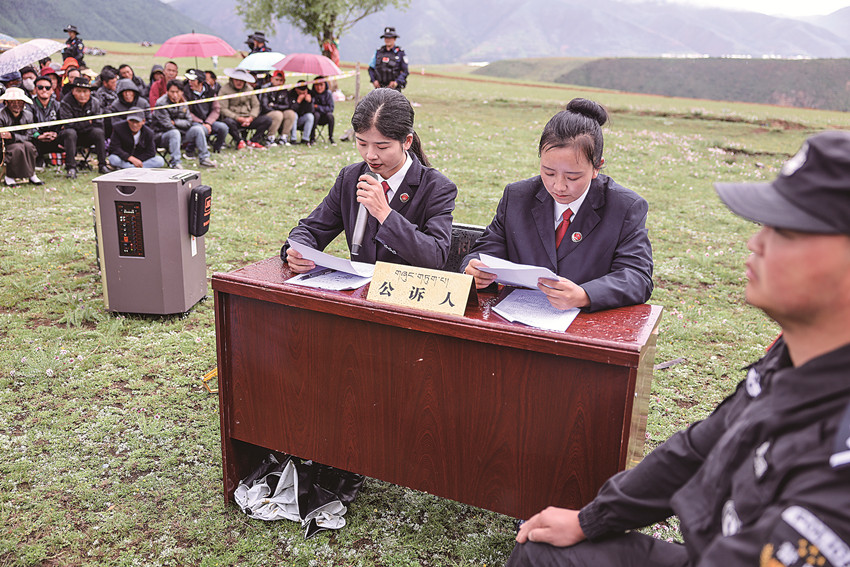 白玉縣檢察院提起公訴案件以“巡回法庭”形式在贈科鄉(xiāng)公開開庭審理。