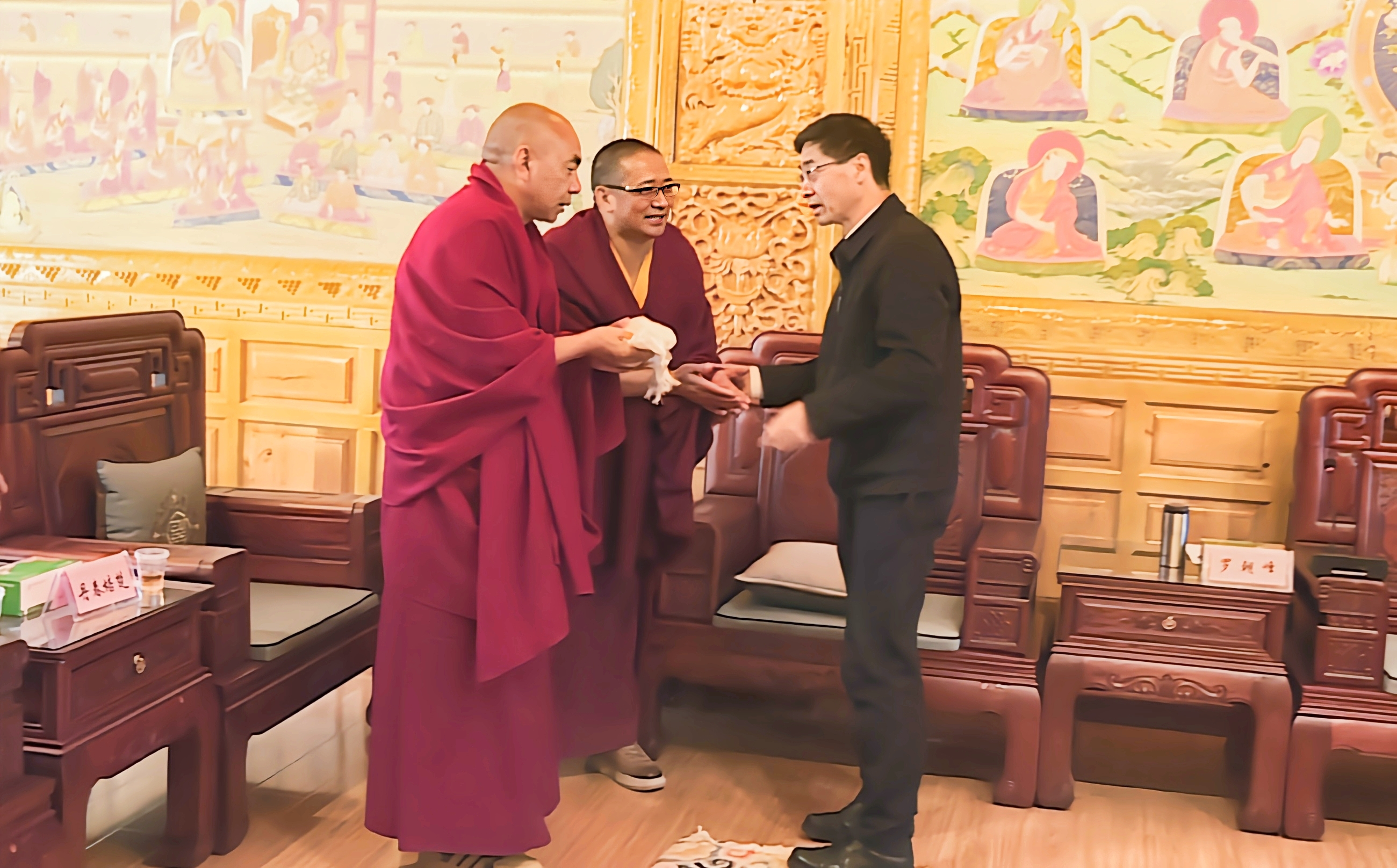 在松贊林寺,羅朝峰與宗教界代表人士深入交流座談,詳細(xì)了解僧人學(xué)修、生活等情況,面對(duì)面傾聽他們的心聲、訴求,引導(dǎo)僧人們從多年來國家面貌、人民生活發(fā)生的變化,松贊林寺基礎(chǔ)設(shè)施、僧人修行條件的變化中憶苦思甜,感念黨恩。希望他們珍惜和諧穩(wěn)定的大好局面和良好的修行生活條件,深入踐行習(xí)近平總書記提出的“政治上靠得住、宗教上有造詣、品德上能服眾、關(guān)鍵時(shí)起作用”政治要求,繼承和發(fā)揚(yáng)愛國愛教的優(yōu)良傳統(tǒng),進(jìn)一步鑄牢中華民族共同體意識(shí)。
