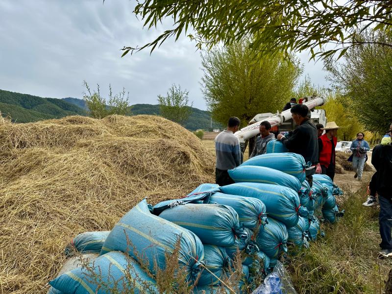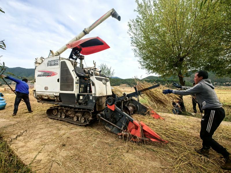 眼下,正是稻谷成熟收獲的時(shí)候。在維西縣攀天閣鄉(xiāng)安一村的稻田里,一穗穗黑谷將土地染得一片金黃,豐收的喜悅撲面而來。人與機(jī)器齊上陣,現(xiàn)場(chǎng)呈現(xiàn)一派繁忙熱鬧的景象。