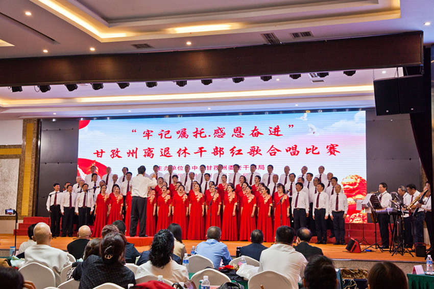 為深入學(xué)習(xí)貫徹習(xí)近平新時(shí)代中國特色社會(huì)主義思想,進(jìn)一步激發(fā)全州廣大離退休干部奮進(jìn)新征程、建功新時(shí)代的革命熱情,展現(xiàn)甘孜州離退休干部良好的精神風(fēng)貌,近日,州委老干部局在成都舉辦了“牢記囑托 感恩奮進(jìn)”甘孜州離退休干部紅歌合唱比賽及干部集中榮退儀式。360余名離退休干部和老干部工作者參加。