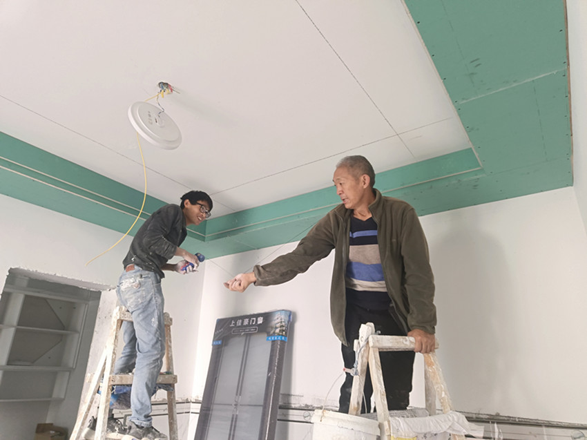 村民室內(nèi)忙裝修。
