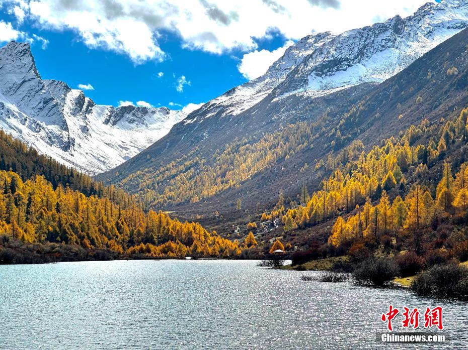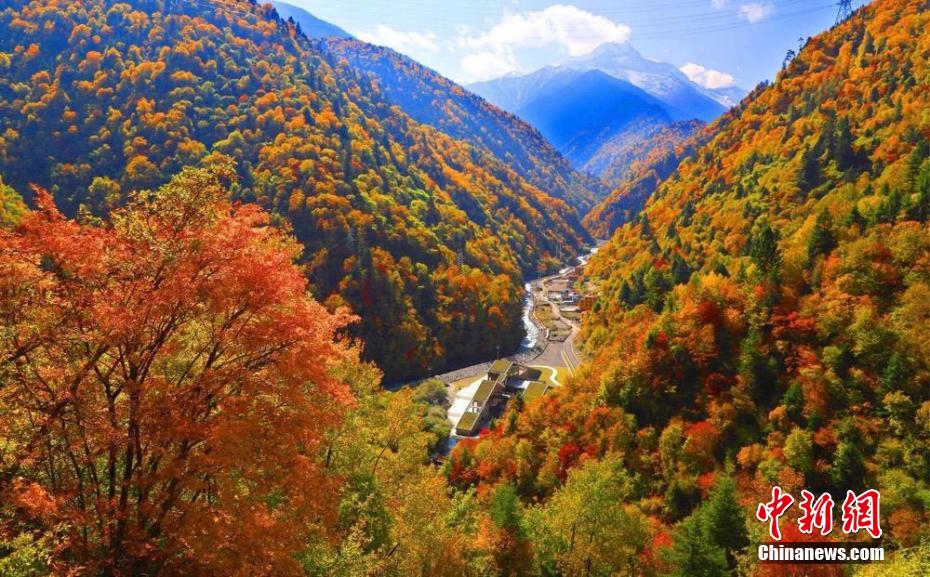 深秋時節(jié),四川省阿壩州小金縣瑪嘉溝迎來一年中最美季節(jié),雪山、冰川、海子、針葉林、原始森林等在藍天白云下變得色彩斑斕,層林盡染,已是一幅半山彩林半山雪的壯觀景象。陳邦亮 攝