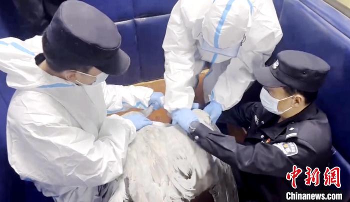 圖為民警和瑪可河林業(yè)局工作人員對灰鶴進(jìn)行詳細(xì)檢查。曹民鍇 供圖