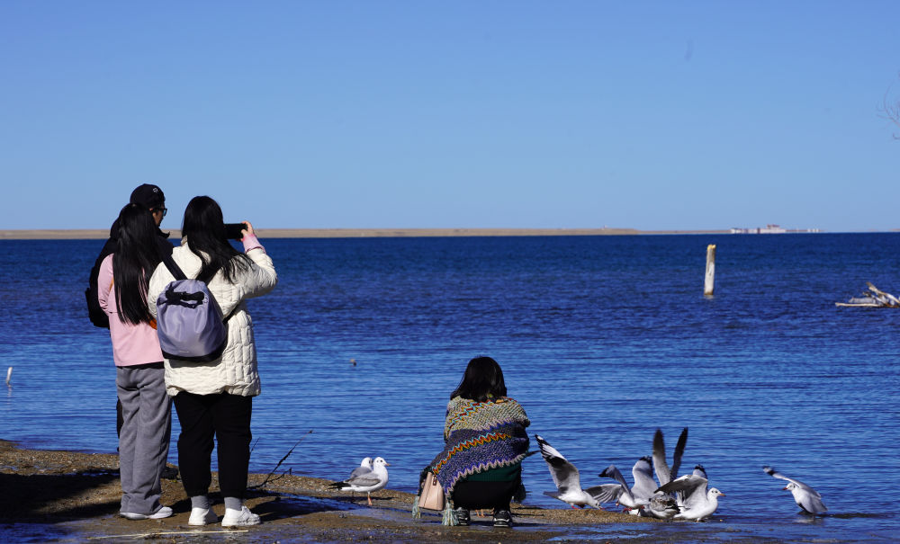 11月23日,游客在青海湖游玩。新華社記者 耿輝凰 攝