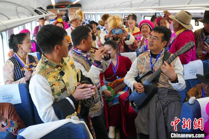 飛速行駛的列車上,不同民族的乘客紛紛亮出“看家本領”,載歌載舞慶祝麗香鐵路開通。麗香鐵路沿線世居的藏、傈僳、納西等民族長期交流、交往、交融,形成互相尊重、欣賞、學習的優(yōu)良傳統(tǒng)和豐富多彩的民族文化。
