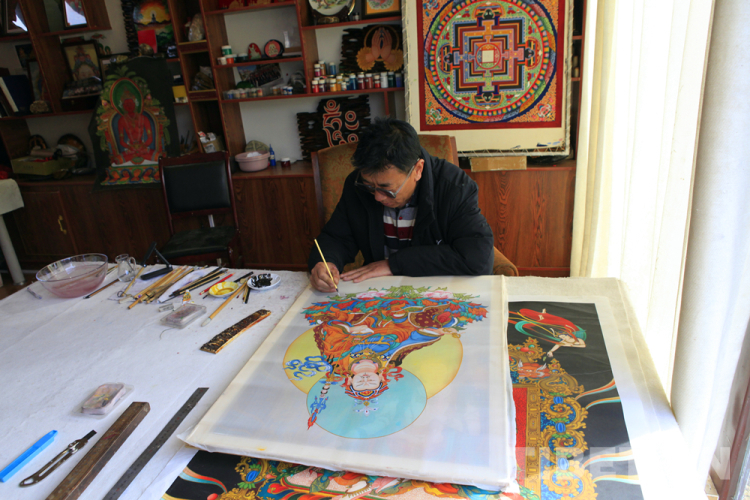 圖為呷瓦畫(huà)師作畫(huà)