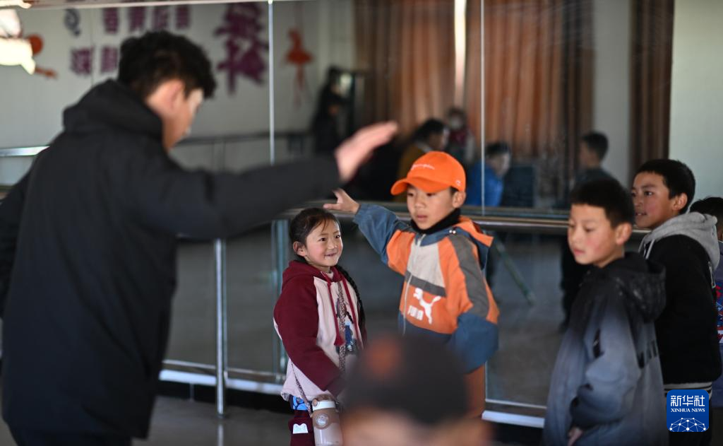 孩子們?cè)谇嗪S駱淝槿R縣文化館參加少兒藏戲排練(1月12日攝)。新華社記者 韓方方 攝