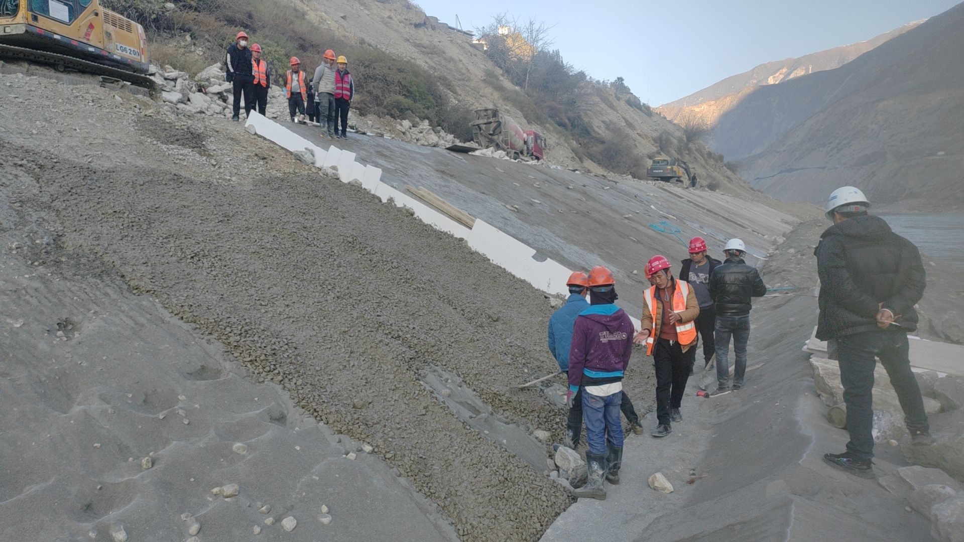 近日,在德欽縣奔子欄鎮(zhèn)防洪堤防工程施工現(xiàn)場,工作人員正在進行堤壩主體工程建設。