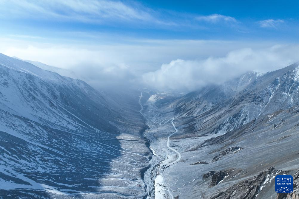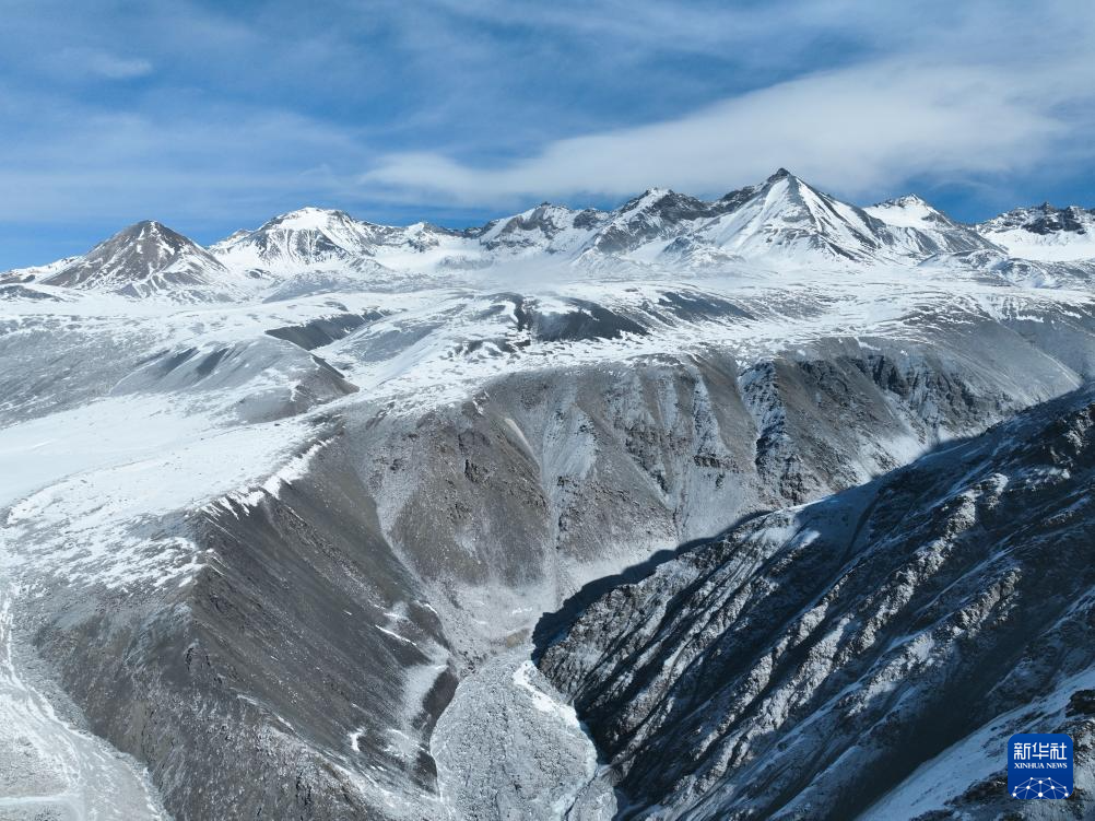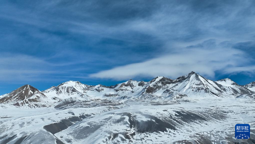 這是1月23日在青海省海北藏族自治州門(mén)源回族自治縣境內(nèi)拍攝的崗什卡雪峰(無(wú)人機(jī)照片)。新華社記者 張龍 攝