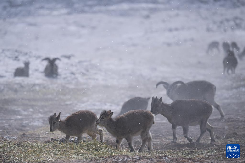 1月23日,幾只巖羊在青海省海北藏族自治州門(mén)源回族自治縣境內(nèi)的崗什卡雪峰活動(dòng)。新華社記者 張龍 攝