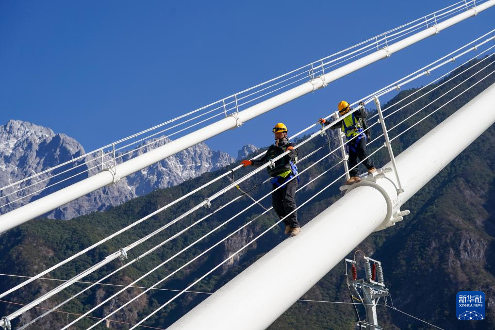 云南麗江至香格里拉鐵路(麗香鐵路)即將迎來開通后的首個春運,為確保旅客平安出行,國鐵昆明局廣通工電段新尚綜合維修工區(qū)班對虎跳峽金沙江鐵路大橋進行全面“體檢”。