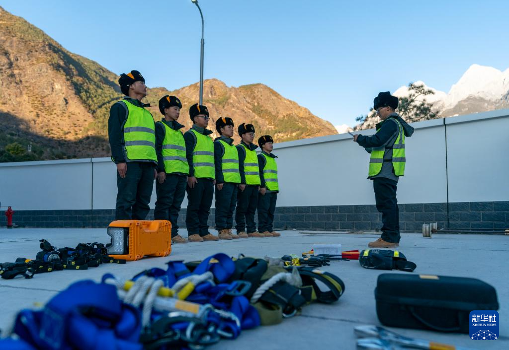 1月24日,工區(qū)班長楊應文(右一)在清點人數(shù)并強調(diào)注意事項。新華社記者 陳欣波 攝