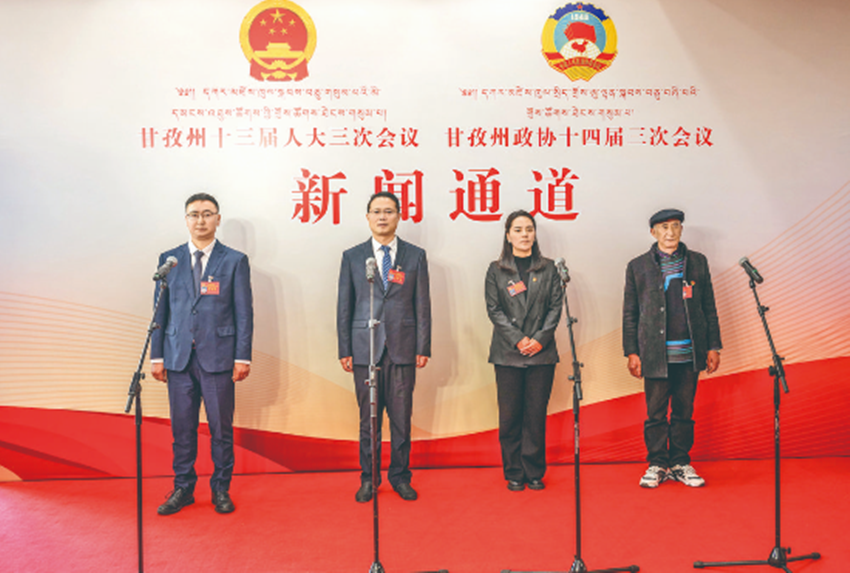 1月30日下午,甘孜州十三屆人大三次會議“代表通道”正式開啟。瀘定縣委副書記、縣長王蕾,得榮縣日雨鎮(zhèn)黨委書記江潔,亞丁景區(qū)管理局游客服務科科長余光榮,瀘定縣磨西鎮(zhèn)青岡坪村支部書記、村委會主任呂東才四位州人大代表在現(xiàn)場回應社會關(guān)切熱點。