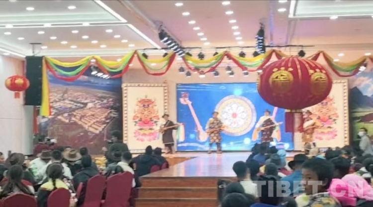 村晚在“新年新氣象,愿大家的生活如同高原上的雄鷹,自由翱翔在幸福的天空;愿每個(gè)人的笑容如雪山之巔的雪蓮花,純潔而美麗...扎西學(xué)!”《吉祥禮贊》的祝福詞中開(kāi)始。