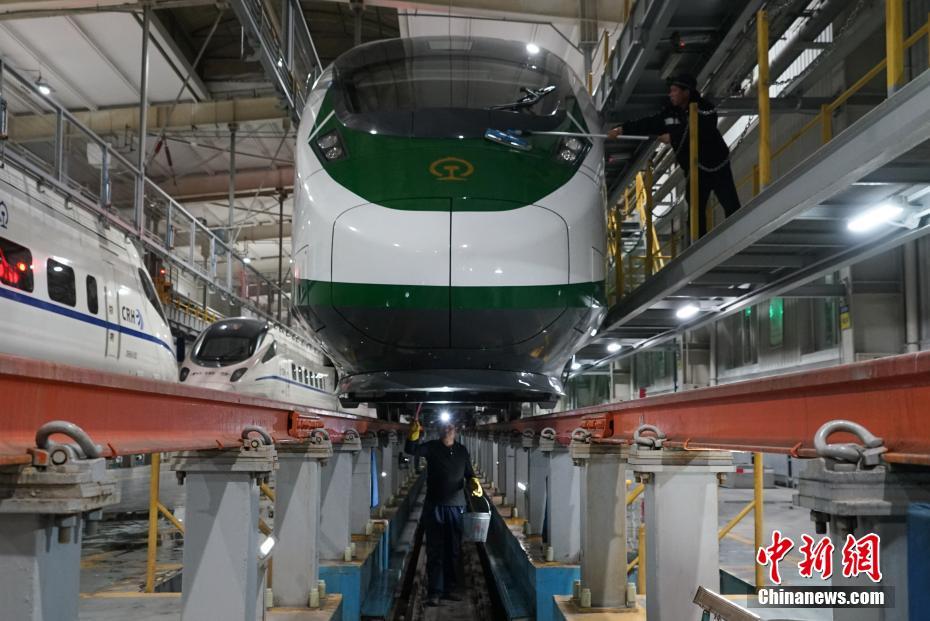 21時40分,動車組上所有電務設備都檢查完畢,整個過程中,他們從車頭到車尾至少走了3個來回。春運期間,他們每晚要全面檢查試驗5列動車組,一個晚上要步行大約9公里。