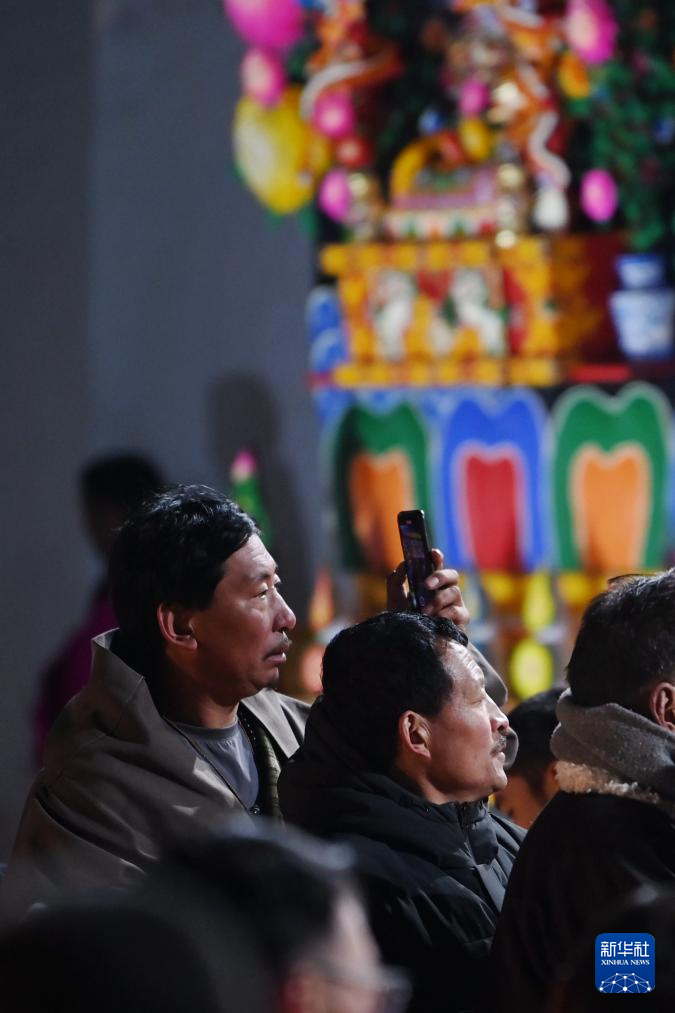 2月24日晚,拉卜楞寺酥油花燈展上人潮涌動。新華社記者 方欣 攝