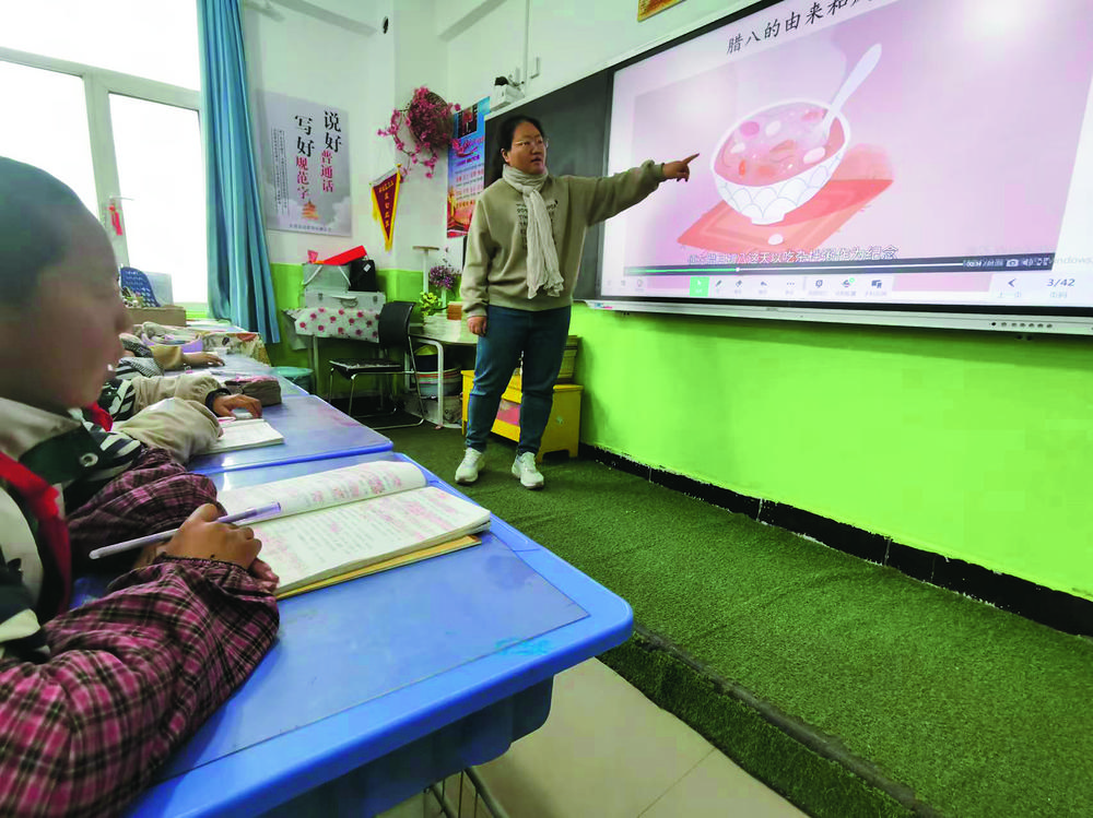 老師解萌萌借助智能黑板,通過視頻給學生講授中國傳統(tǒng)節(jié)日和文化。