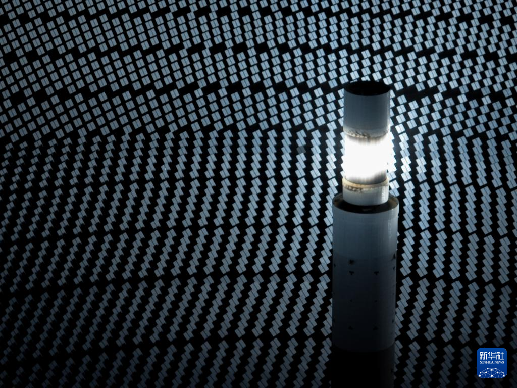 這是4月23日在青海省海西蒙古族藏族自治州德令哈市光伏(光熱)產(chǎn)業(yè)園拍攝的光熱電站(無人機照片)。新華社記者 張龍 攝