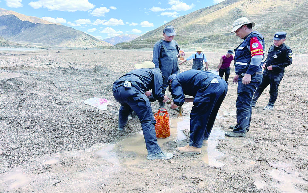 洛松才仁在巡視中發(fā)現(xiàn)了該情況,及時拍照將情況反映到巡護員微信群,玉樹市長江禁捕辦立即組織市公安局、市農(nóng)牧和科技局、市農(nóng)牧綜合行政執(zhí)法大隊組成聯(lián)合執(zhí)法巡查組,洛松才仁和另外一個巡護員叫上附近的農(nóng)牧民,大家借助防曬網(wǎng)、水桶等一切能利用的設(shè)備,從水溝中撈出約600尾擱淺的魚,把它們放歸到了通天河內(nèi)。