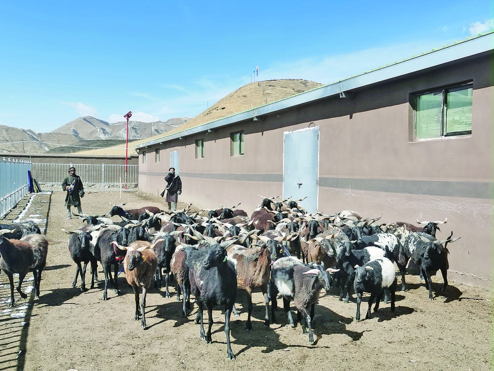 “‘尕瑪頓丹’羊擴(kuò)繁基地占地面積1.75公頃,有畜棚4座,草料棚1座,病畜隔離室、管理用房、排水渠、堆糞場等一應(yīng)俱全?!奔獾麓妩h支部書記桑斗合加介紹,合作社成立之初,調(diào)動全村牧民參與村集體經(jīng)濟(jì)項(xiàng)目創(chuàng)建的積極性,鼓勵大家用牲畜和現(xiàn)金入股,結(jié)果230戶,每戶拿出2000元,眾籌460000元,一次性買進(jìn)150只“尕瑪頓丹”羊。