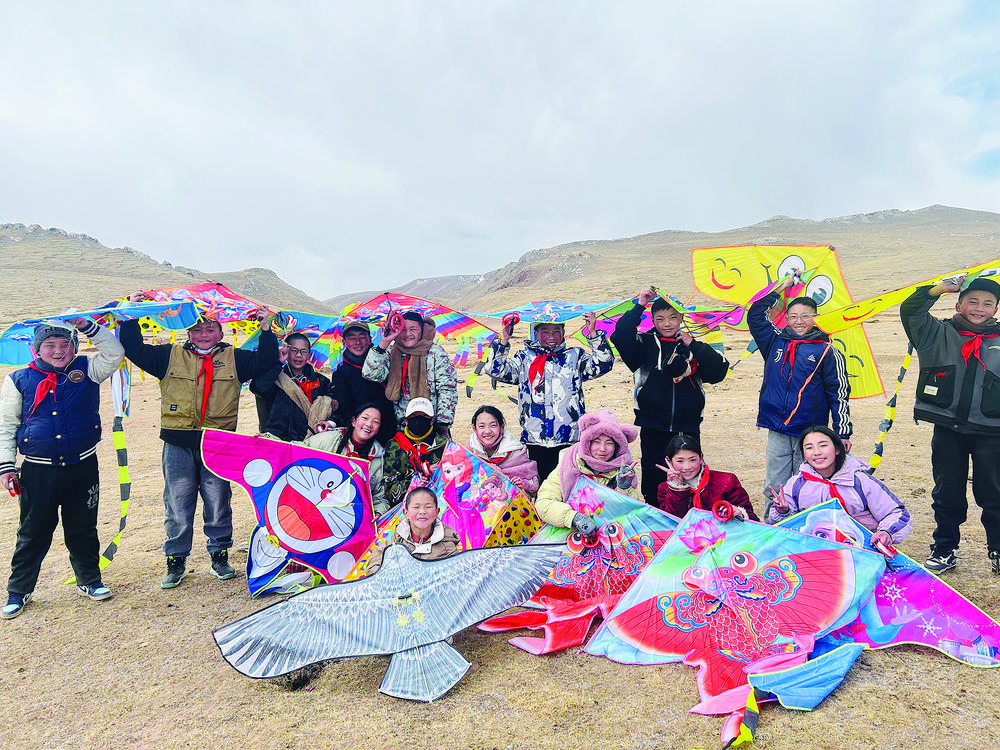 一張張笑臉和風箏一樣多彩燦爛。索加鄉(xiāng)小學提供
