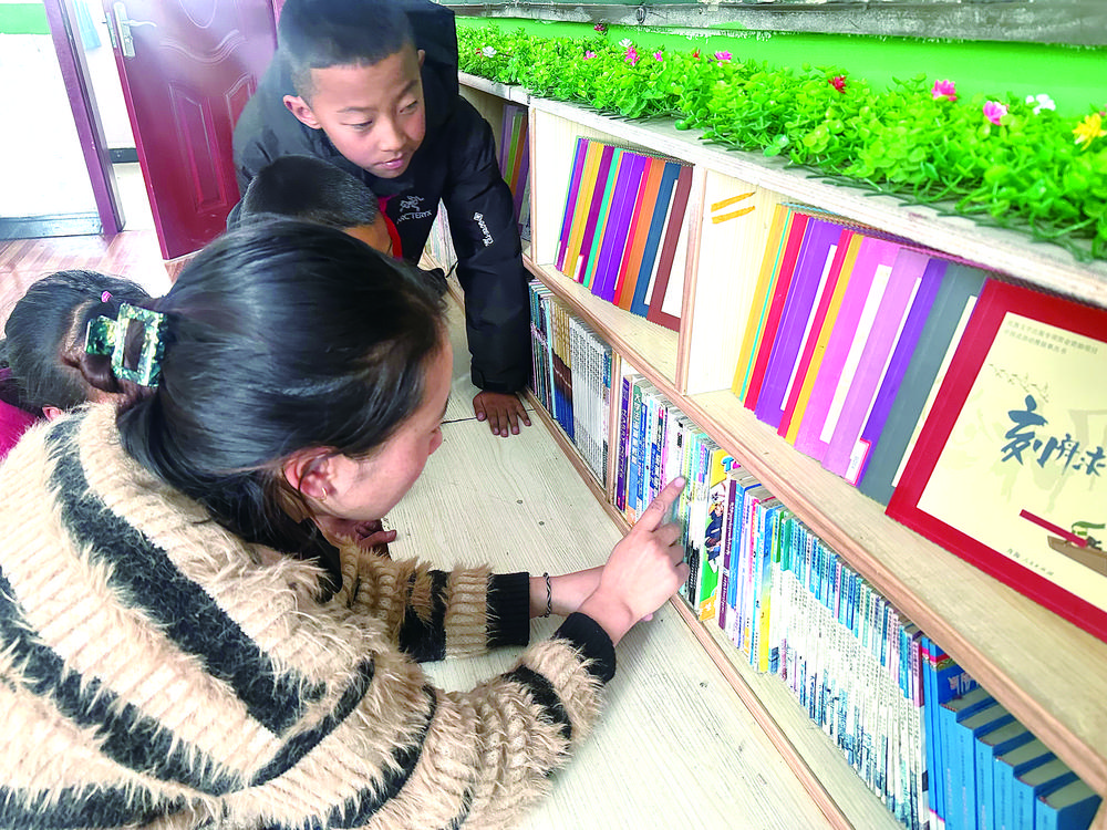 清晨,校園里傳來孩子們的早讀聲,給這個平均海拔4700米的鄉(xiāng)鎮(zhèn)增添了不少活力。因為班級人數(shù)較少,學校把教室隔開,開辟出一個很受孩子們喜愛的看書、休息和寫作業(yè)的區(qū)域?!艾F(xiàn)在學校為每個班級配備了希沃白板,現(xiàn)代化教學設(shè)備的引入,不僅豐富了教學手段,也使得課堂教學變得更加生動、直觀和高效。我們可以通過希沃白板展示課件、播放視頻、進行現(xiàn)場互動,極大地提升了學生的學習興趣和參與度?!闭讨魅尾槿照f。