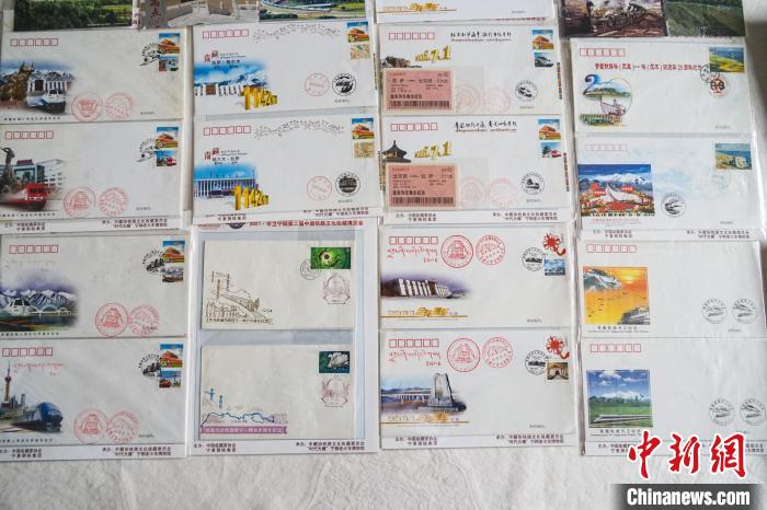 圖為徐超收藏的關(guān)于青藏鐵路不同年代的首日封。 馬銘言 攝