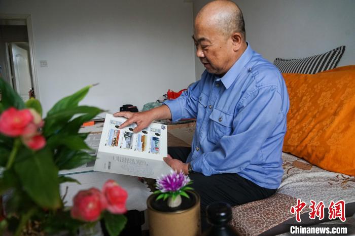 圖為徐超翻看關(guān)于青藏鐵路的紀念站臺票冊。 馬銘言 攝