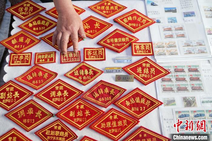 5月29日,青海西寧,徐超展示收藏的不同年代的鐵路臂章、胸牌。56歲的徐超是中國鐵路青藏集團有限公司西寧車站的一名客運員,40年間,他收藏了不同年代的郵票、臂章、車票、信封等近萬件鐵路“老物件”,其中不乏香港、臺灣鐵路車票,以及外國鐵路郵票等。閑暇時,徐超會將藏品分享到社交平臺,與志同道合的朋友交流。徐超說,作為鐵路工作者,希望通過“老物件”讓更多人了解鐵路事業(yè)的發(fā)展,最大限度發(fā)揮其價值。
