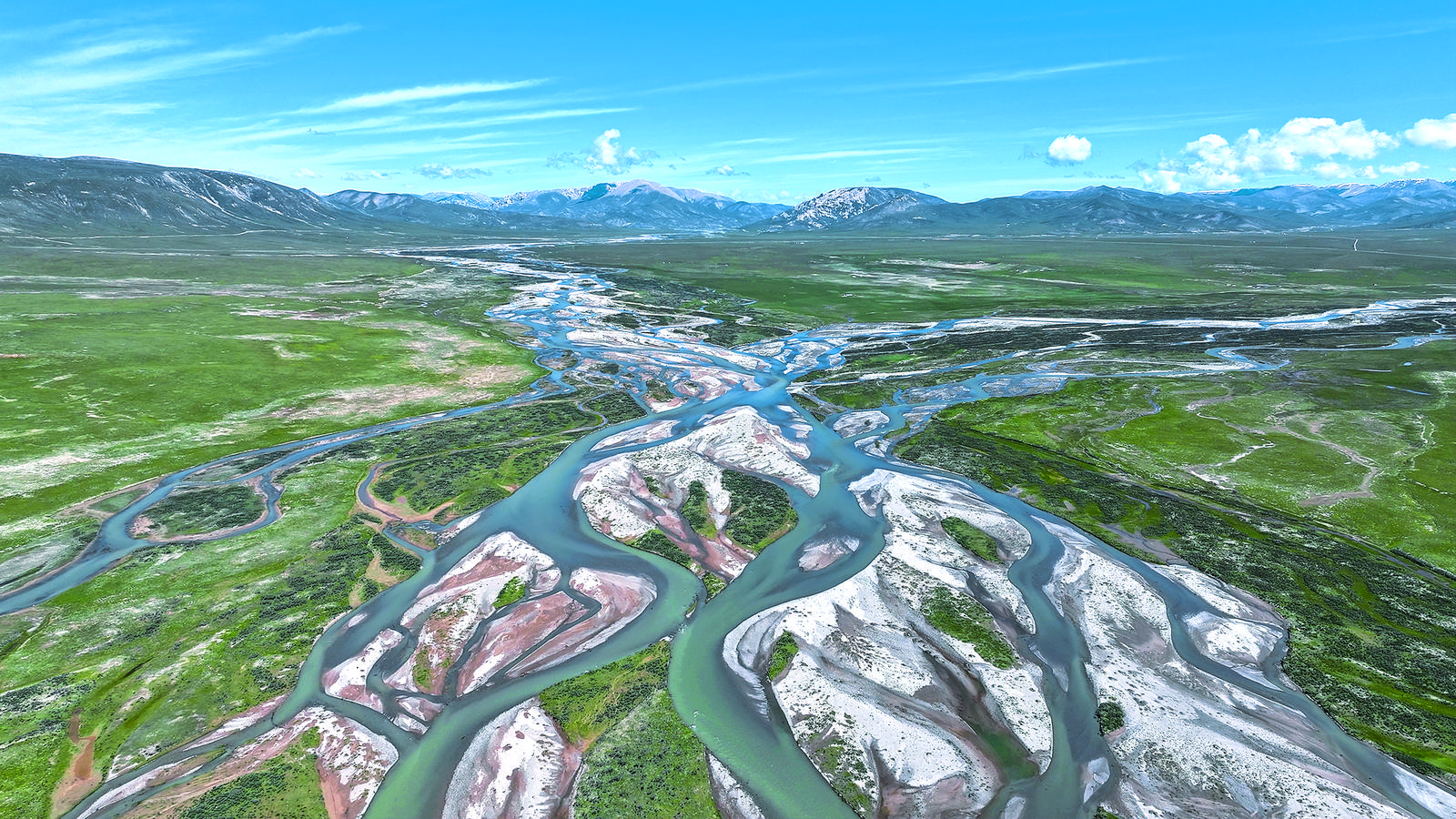 盛夏的清晨,從海西蒙古族藏族自治州天峻縣出發(fā),沿布哈河逆流而上,行進(jìn)的方向,正是青海湖湟魚(yú)(裸鯉)洄游的方向。從高處俯瞰,布哈河的一條條分岔猶如人體血管,肆意流淌,但最終又歸為一處,河道兩旁甚至河道內(nèi)的淺灘,密密麻麻分布著灌木林,林木簌、簌、簌……響動(dòng)著,只見(jiàn)馬鹿林中穿梭。