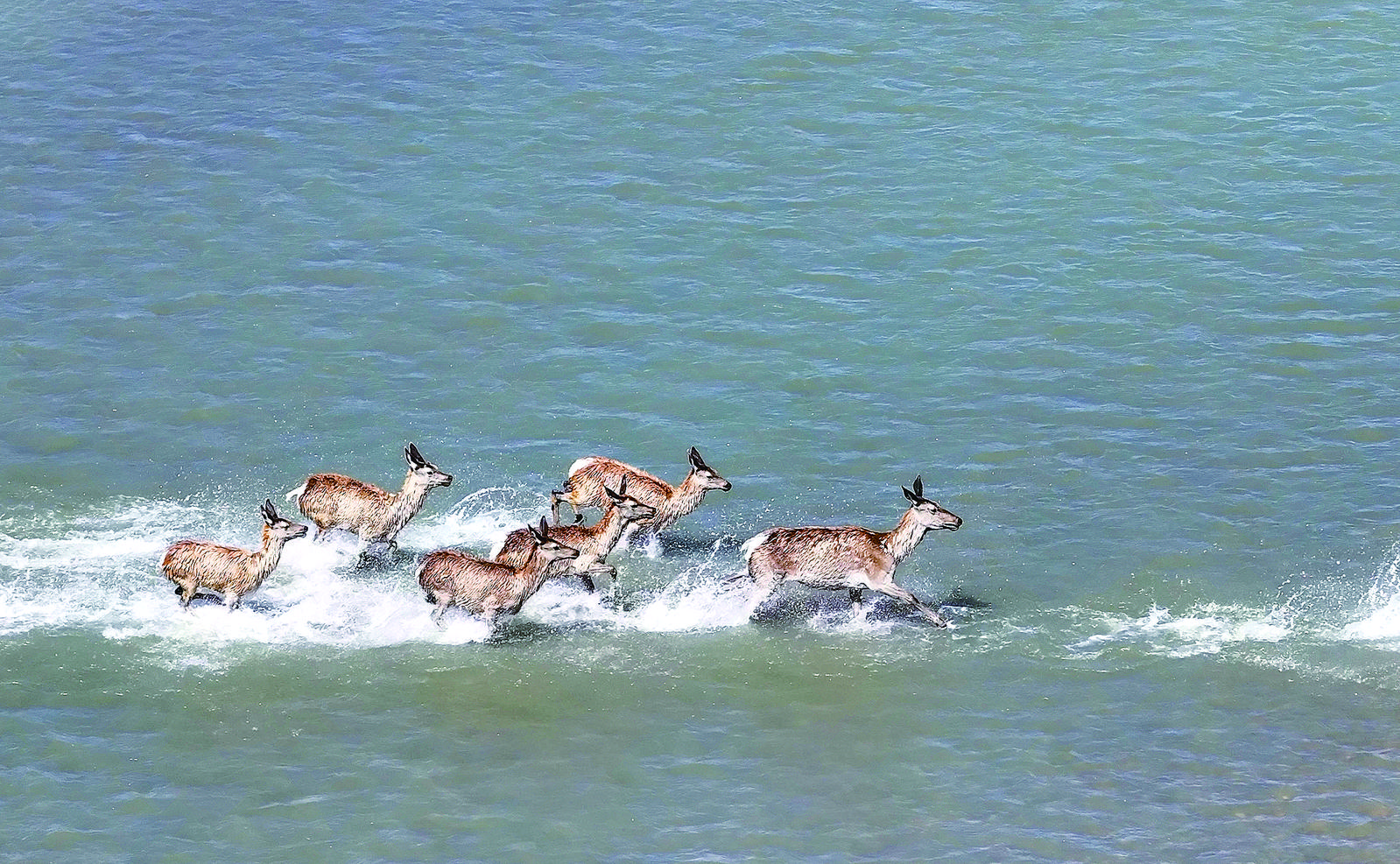 馬鹿群穿過(guò)布哈河。