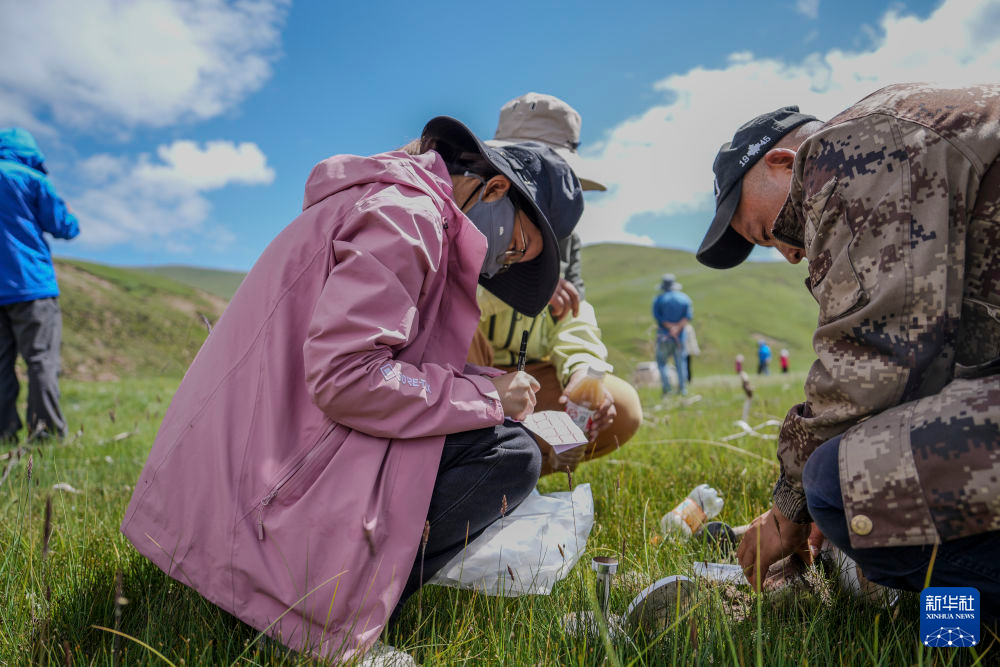 7月23日,長江科學(xué)院水資源綜合管理研究所的程淑婕在通天河曲麻萊河段測量土壤溫濕度。新華社記者 伍志尊 攝
