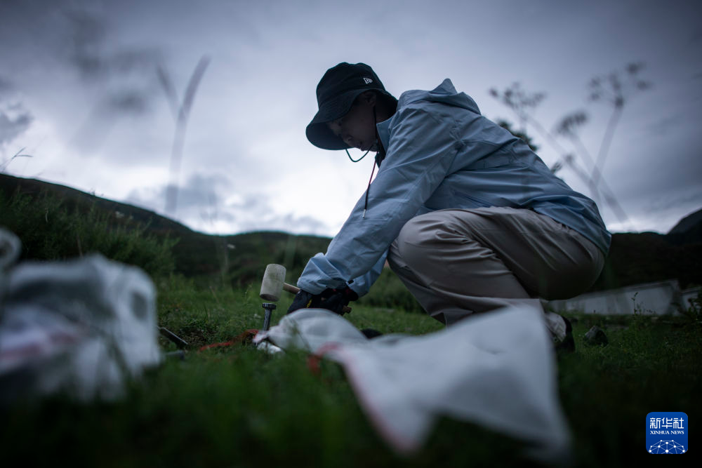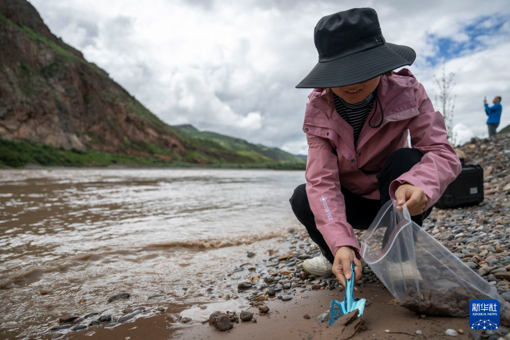 7月23日,長江科學(xué)院河流研究所的劉玉嬌(中)在聶洽曲收納采集的樣品。新華社 杜笑微 攝