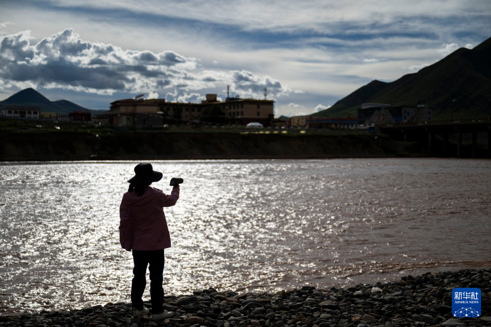 7月21日,長江科學(xué)院河流研究所的劉玉嬌在囊謙香達(dá)河段采集樣品。新華社記者 伍志尊 攝