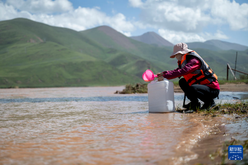 7月21日,長江科學(xué)院河流研究所的劉玉嬌在扎曲雜多段采集樣品。新華社記者 伍志尊 攝