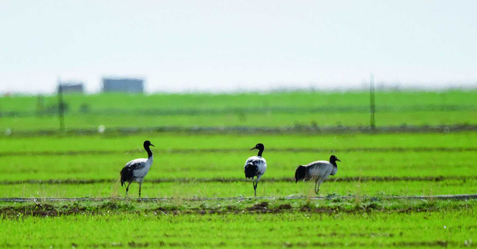 青海湖畔漫步的黑頸鶴。