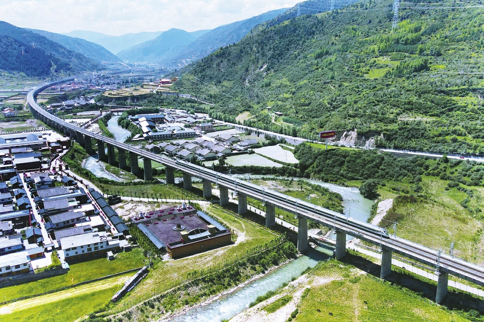 試運(yùn)行列車在川青鐵路鎮(zhèn)江關(guān)至黃勝關(guān)段開行。成蘭鐵路公司供圖