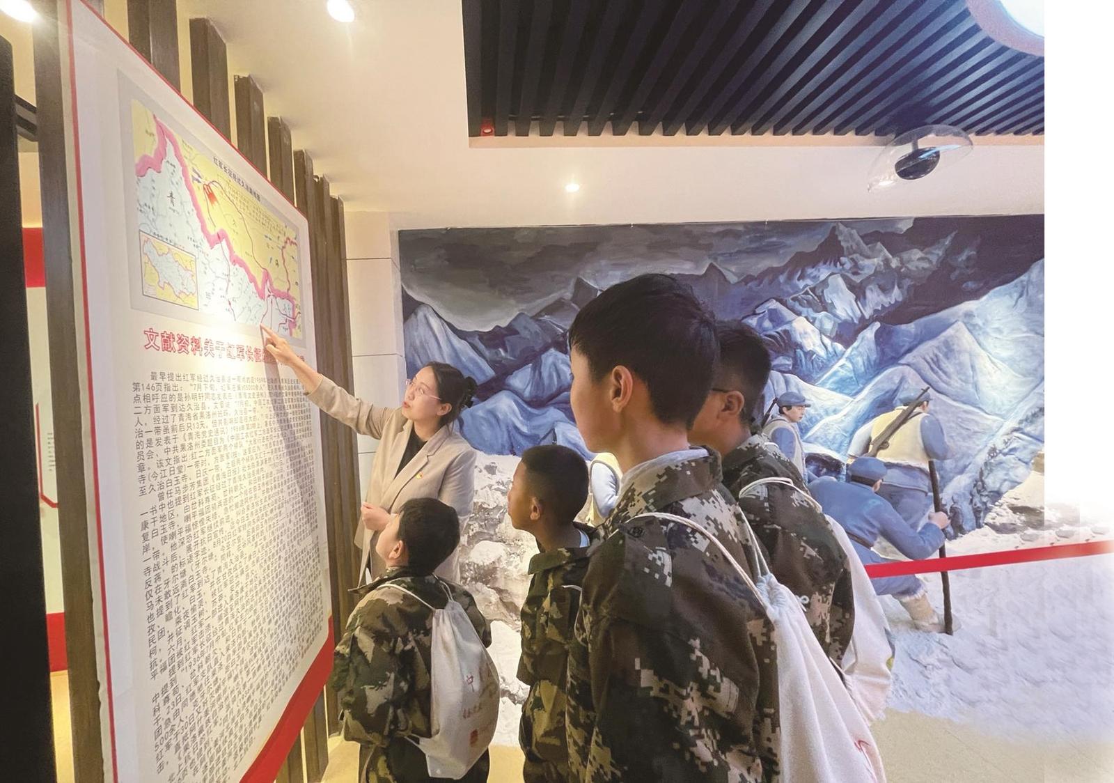 “小朋友別著急,進入下一個展廳后我就會告訴你了?!彼髂献楷斠贿吥托慕獯鹬鴮W生們的問題,一邊引領大家走進鑄牢中華民族共同體意識教育廳,她指著展廳內(nèi)的一幅舊照片說,這位是久治縣和平解放初期的部落頭人康萬慶先生,他積極與當時的果洛工作團溝通聯(lián)系,是首位接觸共產(chǎn)主義思想的愛國進步人士,對久治和平解放、順利建政起到了非常重要的作用……