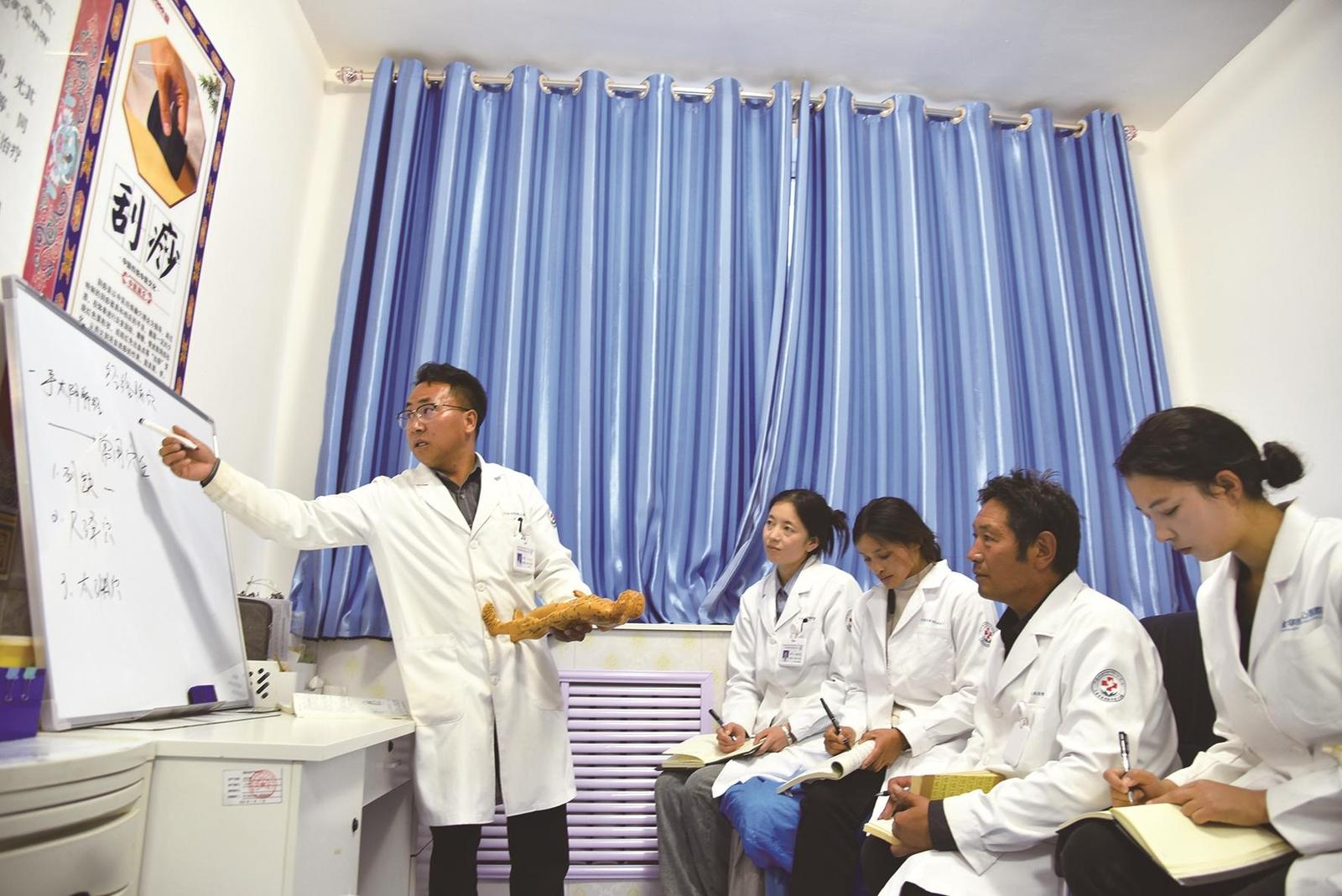 “當時身邊的牧民群眾對于中藏醫(yī)結合治療的方式很是陌生,大多都是持一種半信半疑的態(tài)度,但我們從免費的上門診療入手,一點一點做起,通過實際行動讓群眾看到了中藏醫(yī)結合的好處。如今我們中藏醫(yī)特色診療的口碑越來越好了,除了本地的牧民群眾,來自甘肅、四川、陜西等地的很多患者也都前來尋醫(yī)求診。”