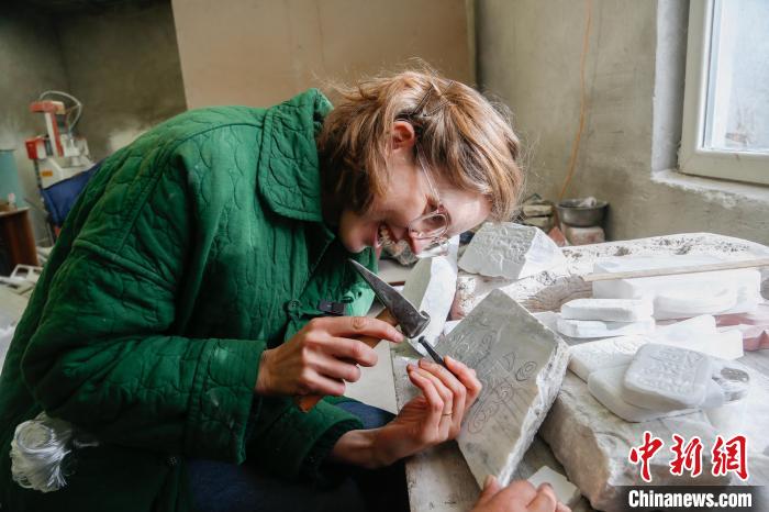 圖為外國(guó)嘉賓體驗(yàn)嘛呢石刻技藝。馬銘言 攝