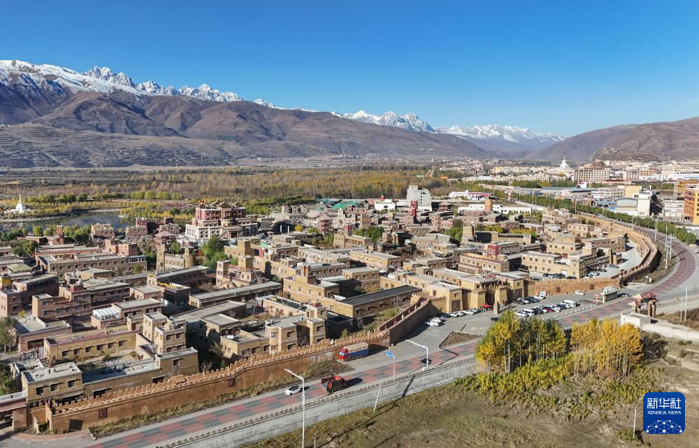 在四川省甘孜藏族自治州拍攝的國道317公路,路邊是甘孜縣格薩爾王城景區(qū)(10月29日攝,無人機(jī)照片)。新華社記者 王曦 攝
