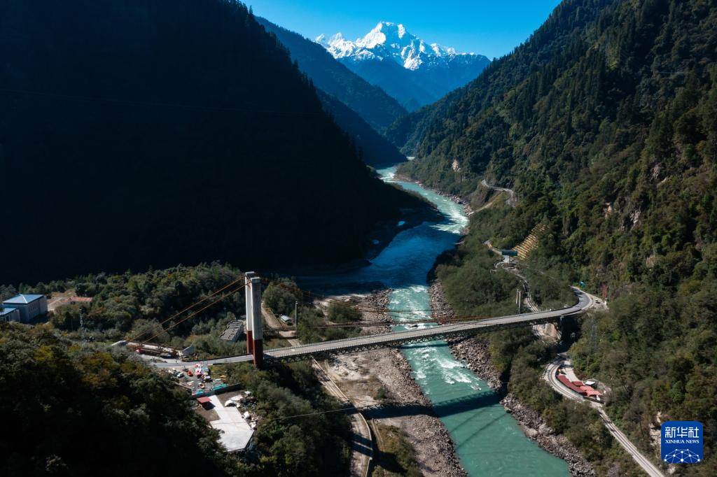 在西藏自治區(qū)林芝市波密縣拍攝的國道318公路通麥特大橋(11月8日攝,無人機(jī)照片)。新華社記者 沈伯韓 攝