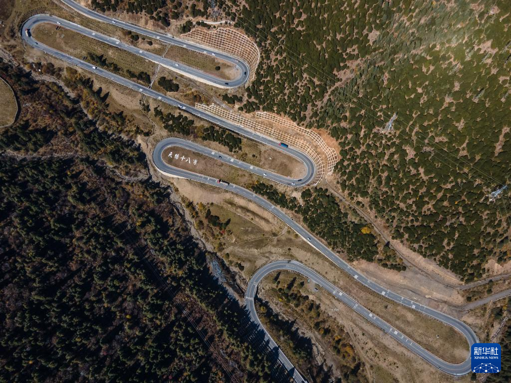 在四川省甘孜藏族自治州雅江縣拍攝的國道318公路“天路十八彎”(10月29日攝,無人機(jī)照片)。新華社記者 儲加音 攝