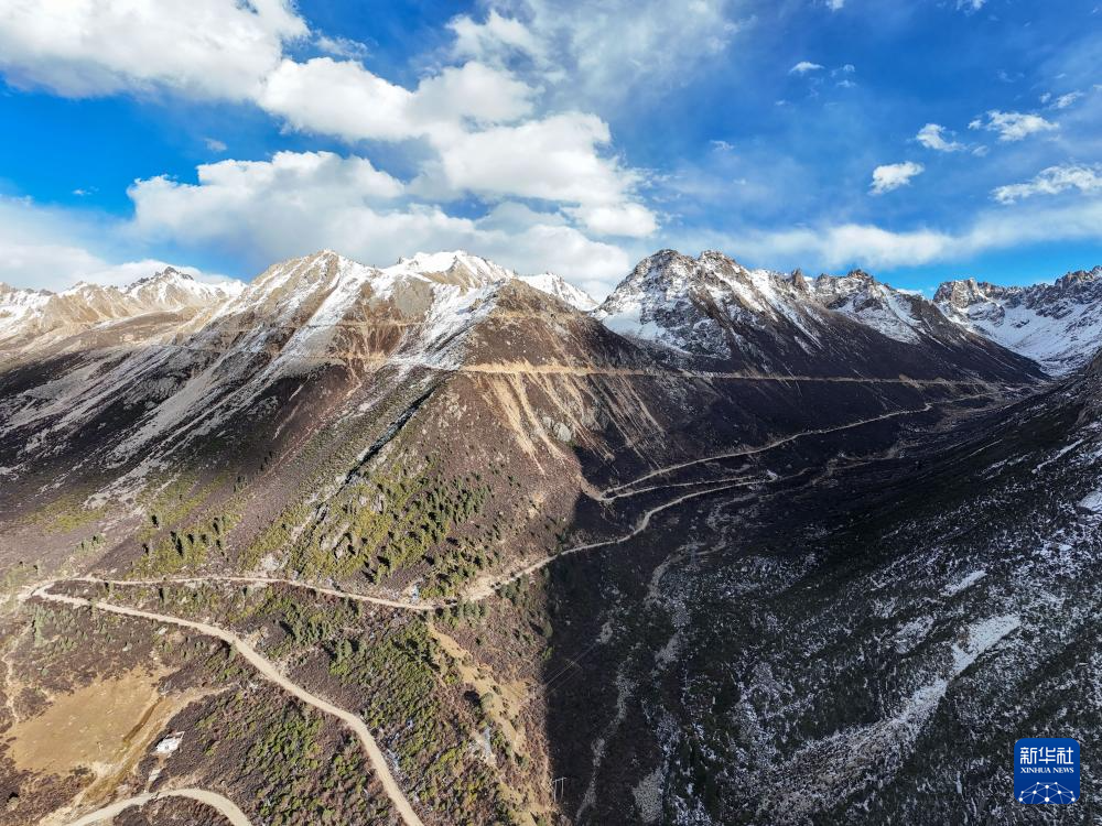 在四川省甘孜藏族自治州德格縣拍攝的國道317公路雀兒山段老路(11月1日攝,無人機(jī)照片)。新華社記者 王曦 攝
