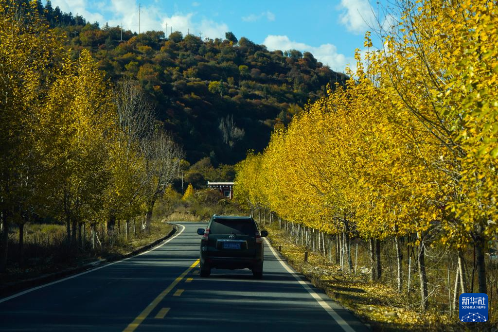 車輛行駛在四川省甘孜藏族自治州道孚縣至甘孜縣的國道317公路上(10月28日攝)。新華社記者 沈伯韓 攝