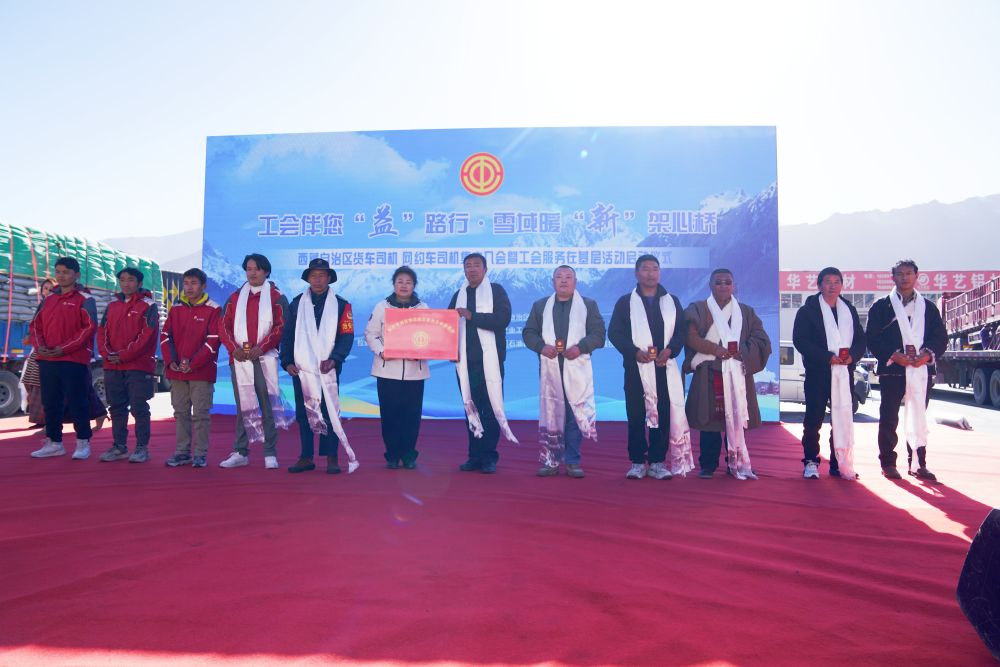 12月5日,西藏自治區(qū)貨車司機(jī)、網(wǎng)約車司機(jī)集中入會(huì)暨工會(huì)服務(wù)在基層活動(dòng)啟動(dòng)儀式在拉薩城投物流園舉行。新華社發(fā)
