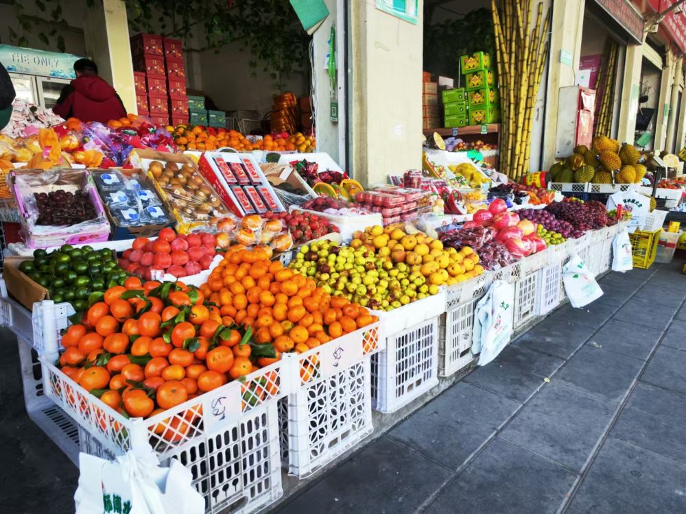 通過(guò)青藏公路運(yùn)輸?shù)嚼_的各類水果集中在拉薩最大的農(nóng)副產(chǎn)品批發(fā)市場(chǎng)——堆龍德慶區(qū)東嘎農(nóng)副產(chǎn)品批發(fā)市場(chǎng)。新華社發(fā)
