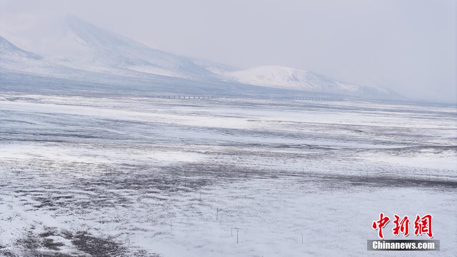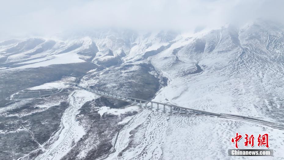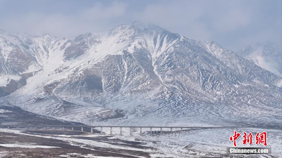 2月22日,鐵路列車從祁連山下行駛。一場春雪過后,青海省海北藏族自治州門源縣境內,連綿不絕的祁連山脈被白雪覆蓋,大地銀裝素裹,靜謐純凈,盡顯壯美山川。中新社記者 馬銘言 攝