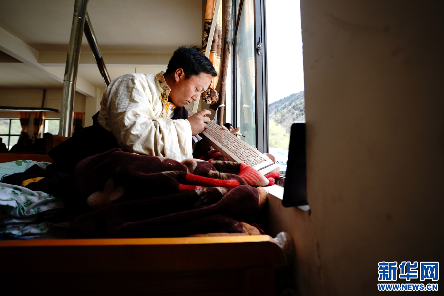 在西藏昌都市江達(dá)縣波羅鄉(xiāng)木松民族手工藝有限責(zé)任公司,波羅鄉(xiāng)村民白瑪加村在制作木刻(5月1日攝)。白瑪加村2017年開(kāi)始學(xué)習(xí)波羅木刻,如今已經(jīng)出師,成為一個(gè)熟練的木刻藝人。在公司里,白瑪加村一個(gè)月能制作6塊木刻作品,每個(gè)月有4000多元的收入。新華社記者詹彥 攝